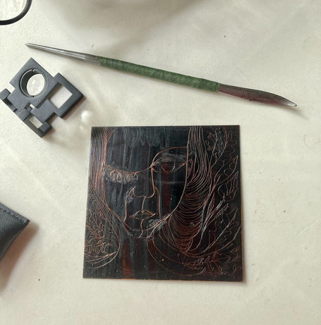 Desde que fui invitada a participar de esta carpeta gráfica vinieron muchos pensamientos a mí sobre el tiempo y lo relativo que es. Entonces, desde el trabajo de la matriz, una placa de cobre que la tenía guardada desde hace tiempo, sus trazos que no buscan algo figurativo, pues el tiempo me lo imagino así, abstracto, sin una forma determinada; y el proceso de estampación, donde cada estampa me tomó más o menos cinco minutos de trabajo… Todo se basa en la relatividad del tiempo y cómo depende de nosotr@s disfrutarlo.